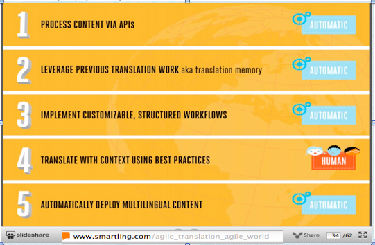 • Current translation process sample: Slideshare screenshot excerpt chart from www.smartling.com/agile_translation_agile_world